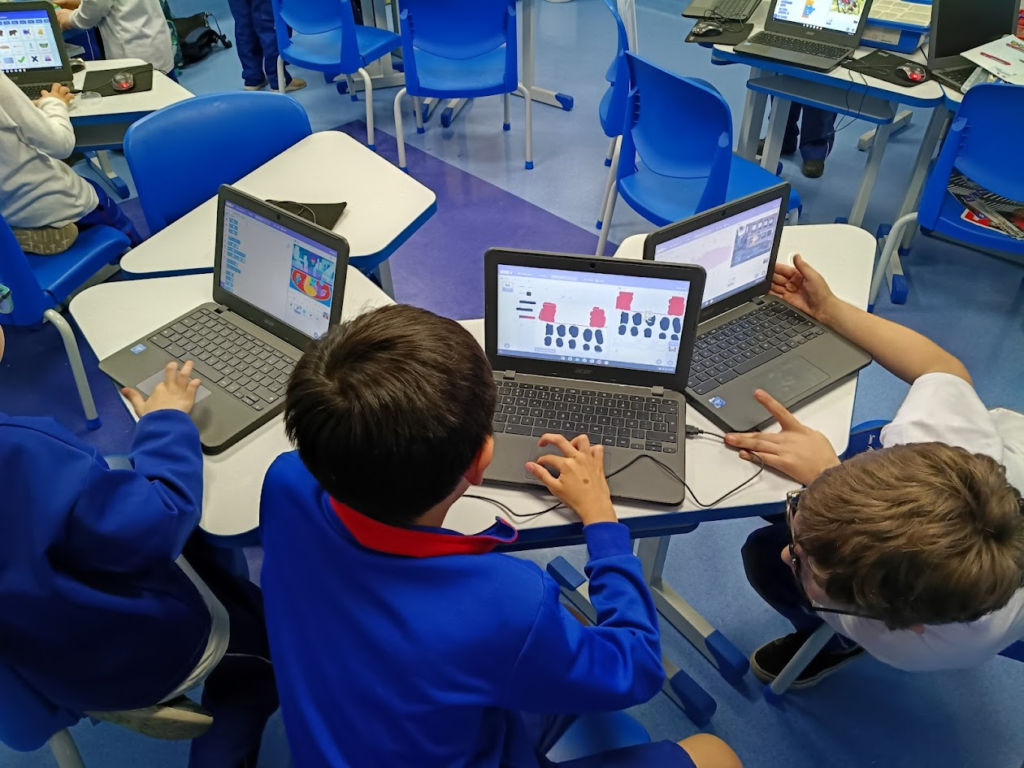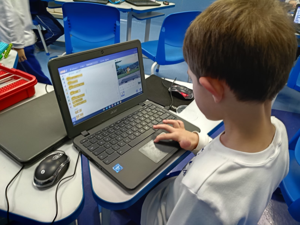 Agora, em outubro, iniciamos uma nova etapa ainda mais empolgante: o módulo de integração com o LEGO® WeDo, onde os comandos programados na tela passam a controlar robôs reais. É o momento em que a programação ganha forma, som e movimento!